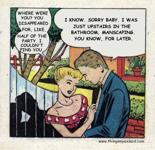 At least he was honest? I don’t know if that’s better, actually. I appreciate a good manscape as much as the next girl, but during the party? Come on. Nobody’s that insecure, are they? Woof.