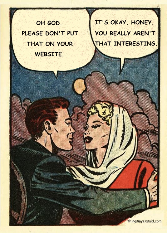 1. They become obsessed with the idea that everything they say will show up on this website. To which the answer is simple: don’t say anything asinine, and you’re safe! Also, luckily, submissions from readers like you are what actually keep this site going. Even my love life isn’t so sad as to warrant 3 quotes a week for 15 months.